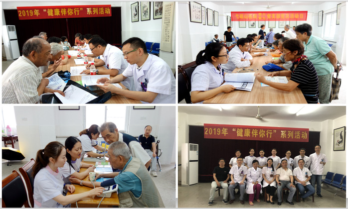 6月19日下午,离退休工作处联合第一附属医院老年医学科、内分泌科开展了2019年“健康伴您行”系列活动,第一附属医院十余名医生和护士为学校离退休教职工把诊问脉。