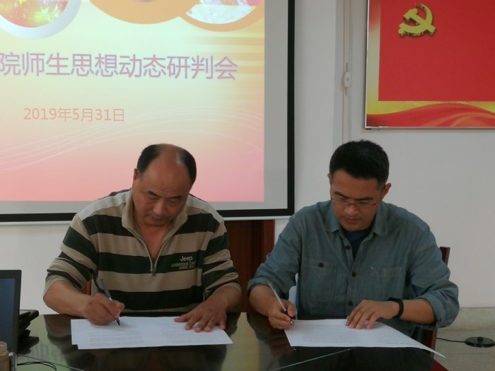 会上,各单位汇报了近期学院师生思想动态和相关工作开展情况,并就安全教育、阵地管理、毕业生就业、教学科研、人才培养、师资建设、专业建设等方面的工作进行了分析研讨。大家一致认为,当前我院师生思想状态总体稳定,主流思想积极健康向上。会议还传达学习了学校有关文件会议精神,组织学院下属教学单位负责人、学生年级辅导员签订了有关安全稳定工作目标责任书,并对学院近期安全稳定工作进行了安排部署。