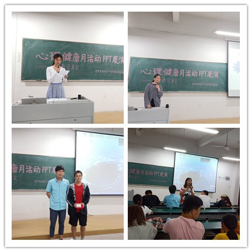 为增强第二课堂心理健康教育活动的吸引力、感染力和实效性,宣传和普及心理健康知识,2019年5月27日晚,医学影像学院在3202教室举办大学生心理健康月活动PPT展演,本次活动以读书分享会主要内容,学院辅导员骆成、张解和、徐梦琪等担任评委。