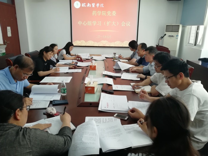 5月23日下午,药学院党委在西辅楼3036会议室召开党委中心组学习(扩大)会议,学院党委委员、党支部书记参加会议,会议由学院党委书记李康才主持。