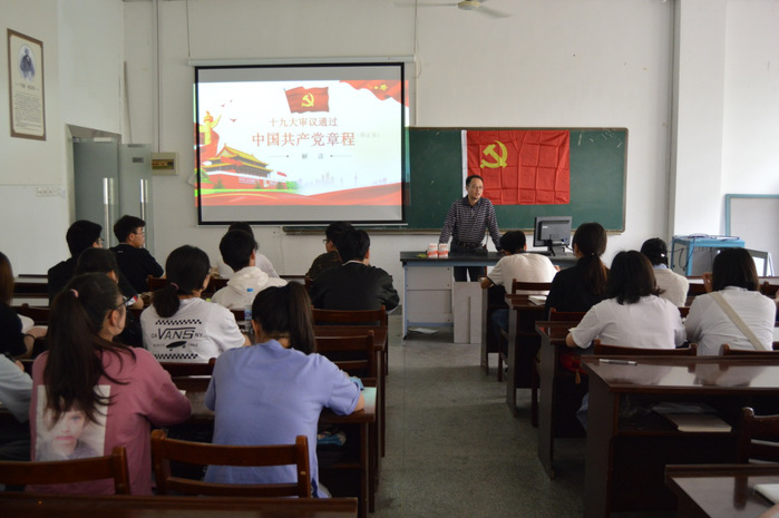 党课培训在庄严肃穆的国歌中拉开序幕。洪亮强调了党课培训的重要性和纪律性,要求同学们认真对待,加强学习。随即,洪亮以《中国共产党章程》为主题主讲第一场培训。在培训中,他首先强调了党章的重要性,要求每个党员都必须牢记党章、严守党章。其次,他对党章的制订与历次修订做了简要介绍,并从总纲与具体条文两方面,结合丰富事例,从多个方面解读了新党章的主要修改内容。最后,他就如何学习党章这一问题,提出要做到五个结合、加强五个修养,并且鼓励同学们要融会贯通,联系实际,认真学习,严格遵守。
