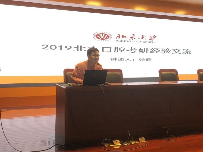 为了帮助学生明确考研目标,掌握相关考研技巧,了解更多考研信息,2019年4月19日晚,口腔医学院在图书馆三楼报告厅举办考研经验交流会。会议邀请了2018届毕业生张鹤、张文瑾,2019届毕业生薛进朗、孙昱昭进行考研交流,马克思主义学院郭超博士、口腔医学院修复教研室副主任邓超博士参加了此次交流会,2016级、2017级及部分2018级同学到场聆听了讲座。
