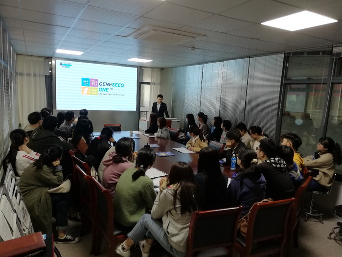 首先,文育锋对南京世和基因生物技术有限公司赵忞超一行的到来表示欢迎,并就检验学院专业建设、实践教学、校企合作、大学生双创教育等方面进行重点介绍。赵忞超介绍了南京世和基因生物技术有限公司的规模、发展历程、未来规划和岗位需求等情况,同时就本次招聘工资待遇、工作生活环境、职业发展空间等方面进行了有针对性的介绍,并对我院人才培养和校企合作表现出浓厚兴趣。