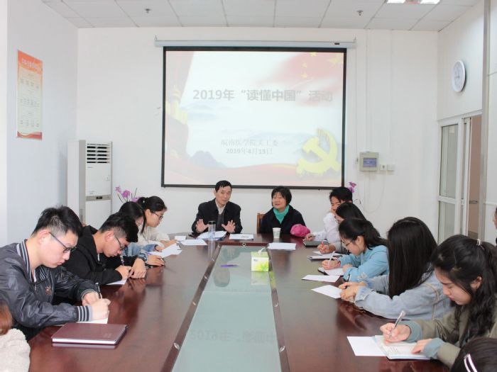 4月13日上午9点整,校关工委联合药学院、人文与管理学院在西辅楼一楼会议室以“读懂中国”为主题召开学生座谈会。校关工委常务副主任周强、委员杨新庆、药学院关工委秘书叶兰及两个学院25名学生代表参加了本次座谈会。会上,周强向同学们介绍了自身的求学经历和工作历程,他说希望通过本次活动能加深同学们对国家发展的认识,提升民族自豪感和自信心。周强通过回答学生提出的问题,向同学们再现学校发展历程,同时从自身经历为同学们介绍新中国一步步的成长历史。作为新中国发展的见证者,周强告诫青年学生吸取历史教训,不断学习、完善和改进,并勉励学生要“读懂中国”,做一个放眼时代、与时俱进、与祖国共命运的人。