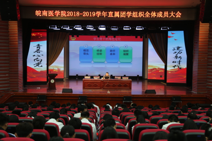 青春心向党,建功新时代。4月10日晚,我校2019年直属团学组织全体学生骨干大会在大学生活动中心礼召开。校团委全体工作人员和600余名学生骨干参加了会议。会议由校团委副书记饶婷婷主持。