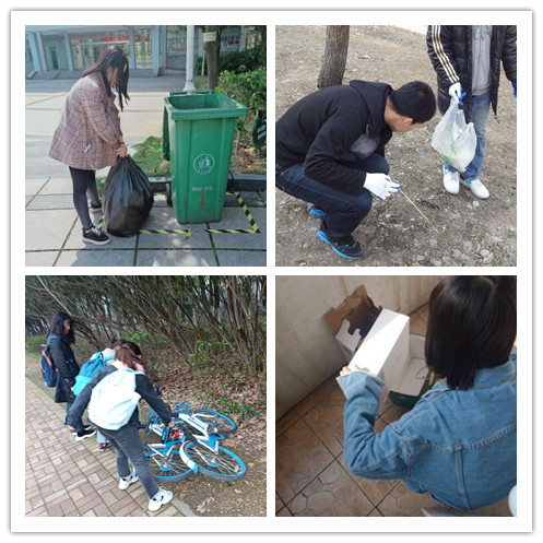 为培养大学生的环保意识,树立科学文明的生活方式, 2017、2018两个年级的同学于3月份多次开展校内和周边环境清扫工作,同学们分多个小分队在校园各角落收集可回收的废纸板与饮料瓶,整理各宿舍可回收物品,清理随地乱扔的垃圾,妥善安排校内和校门口的共享单车,不放过一个塑料袋、一个烟蒂、一张废纸,在棕榈大道、篮球场、网球场上,都能看到学生的身影,“洗脸”后的校园面貌焕然一新。皖医是我们共同的家园,为自己美丽的家园进行清洁,贡献自己微薄的力量,是每一位志愿者义不容辞的责任。