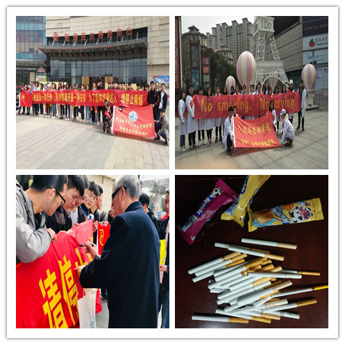 为增进大学生对吸烟危害的了解,培养健康意识,提高自我健康管理能力,3月23日,人文与管理学院“青春法治行”“心梦”“筑梦青春”及“幸福葆”四个实践队围绕“世界无烟,清新一片;迎向健康,放弃吸烟”的活动主题,分别于德胜广场、银泰城、柏庄时代广场与中央城四个地点开展“反吸烟”志愿服务活动。志愿活动包括“横幅签名”和“香烟换糖”两个流程,邀请路人在活动横幅上签字宣言,以签名的方式帮助路人树立责任意识、健康意识;与此同时,活动的志愿者们还鼓励路人用手中的香烟换取志愿者手中的糖果,从而宣传和倡导文明健康的生活习惯,减少吸烟现象,共建文明洁净的城市环境。