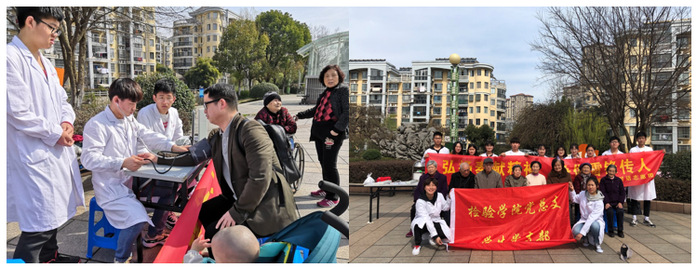 检验学院团委“成长对话志愿团”联合检验学院学生党支部走进了都宝花园社区。志愿者向来往的居民宣传社区健康常识,为广大居民提供血压的常规检查,针对每个居民的不同生活情况,耐心地叮嘱各种日常注意事项,告知合理的膳食搭配,并将部分居民家中食物进行了快速检测。志愿者们贴心周到的志愿服务,认真务实的奉献态度,为社会贡献出自己的所学所长,体会到在奉献中实现自己的价值。