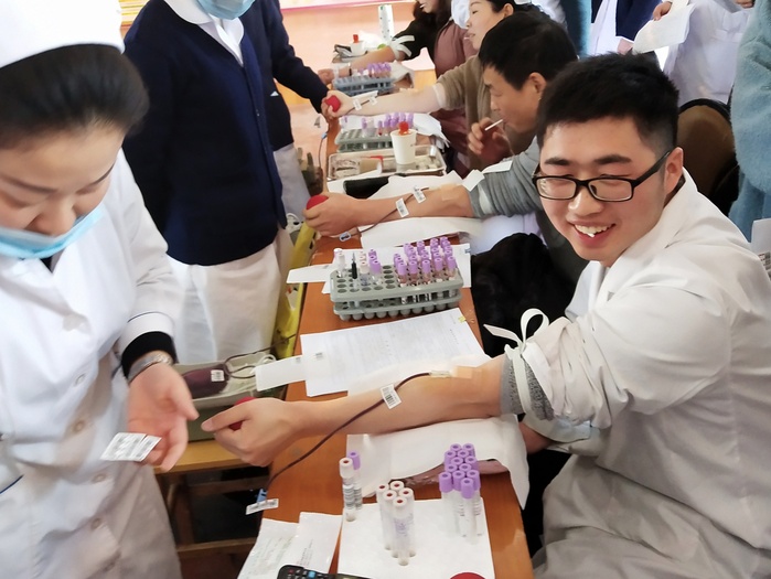 健康所系,性命相托。铜陵市立医院实习队的同学们积极参加医院医务处举办的无偿献血活动,缓解临床用血压力,为生命加油。参与活动的5名同学经过排队、登记、检验,最终每人献血300ml,共无偿献血1500ml。想患者之所想,急患者之所急。志愿者们用涓涓的青春热血浇灌爱心之花,用无私的奉献精神和强烈的责任意识托起生的希望,传递医患关系正能量。