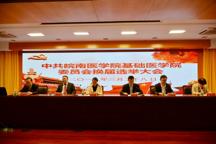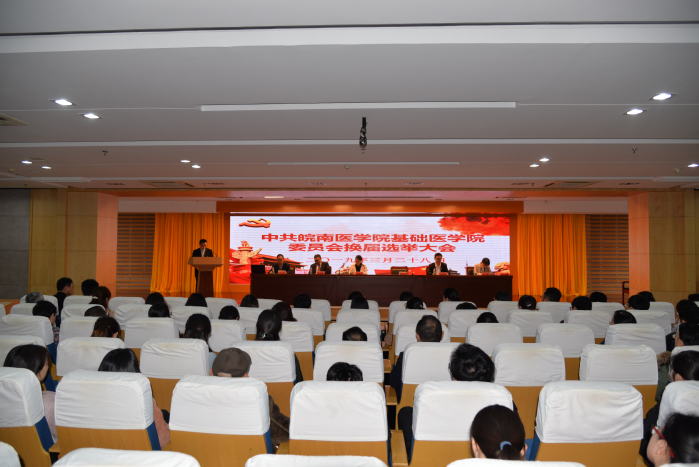 凝心聚力谋发展,务实创新谱新篇。2019年3月28日,中共皖南医学院基础医学院委员会换届选举大会在图书信息楼三楼学术报告厅召开,党委组织部副部长任苔蓉、基础医学院党政班子成员和全体党员参加了大会。大会由学院党委书记、副院长余结根主持。