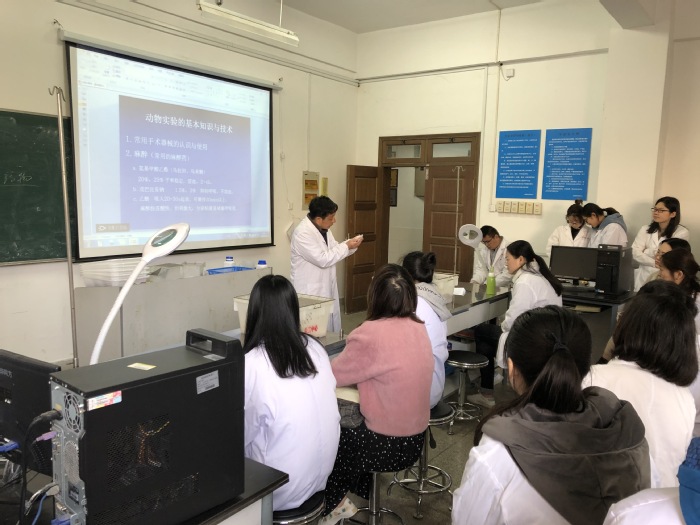 为扎实推进药学院2019届毕业生考研工作,进一步帮助考研学子充分准备复试,提高考研录取率,3月23日上午,药学院联合基础医学院邀请机能学实验实训中心陆晓华和李慧两位老师在1号实验楼1101-1102教室举行《动物实验的基本知识与技能》专题讲座,100余名即将参加研究生复试的同学聆听了讲座。