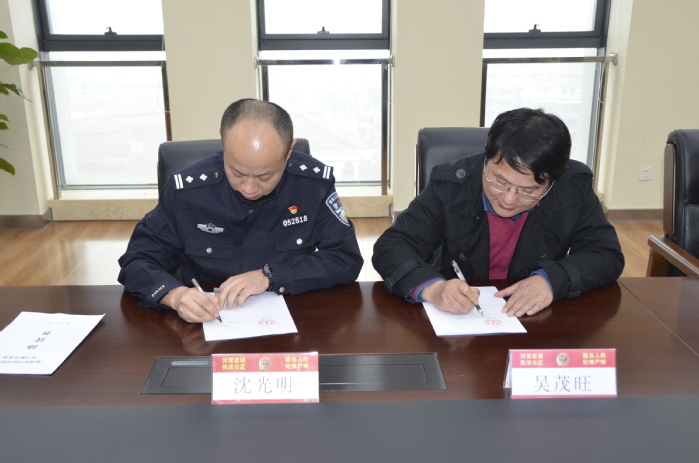 姚国祥对我校法医学院一行的到来表示热烈欢迎,简单介绍了南浔分局刑科室的工作概况、人员构成和实习带教情况。沈光明充分肯定了法医学院的教学质量,指出在分局形成了“张剑工作室”为骨干的法医团队,为平安南浔做出了自己的贡献。实习同学也是南浔分局的一份子,分局将按照学校的要求,结合工作实际做好实习同学的带教工作。随后,双方签订了实习教学基地协议书,并进行了法医学专业实习基地挂牌工作。