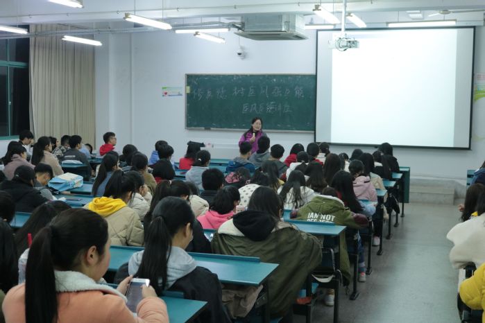 七点整讲座正式开始,黄英首先以央视一套大型公益活动---从2012年寻找“最美乡村医生”到2014年更名为寻找“最美医生”,每年在全国范围内选出十个最美医生和一个医疗团队,至今已有七年为切入点,表达出社会对医德高尚者的呼唤和敬仰。然后通过现场举手的方式调查同学们选择医疗行业的初衷,引发学生对医生职业的思考。之后从不同职业的辛苦认知、医患矛盾告急的集中表现、当前医患矛盾原因分析、医德医风的具体要求、医患沟通之技巧、改善医患关系措施等六个方面阐释了“无德者不能为医,有品者方能济世”的深刻内涵。