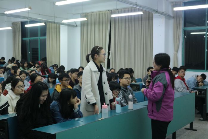 晚上六时许,同学们就已陆续抵达会场就坐,现场秩序井然。黄英也提前二十分钟赶到,在讲座正式开始前与同学们进行有趣的互动交流,拉进了彼此距离。