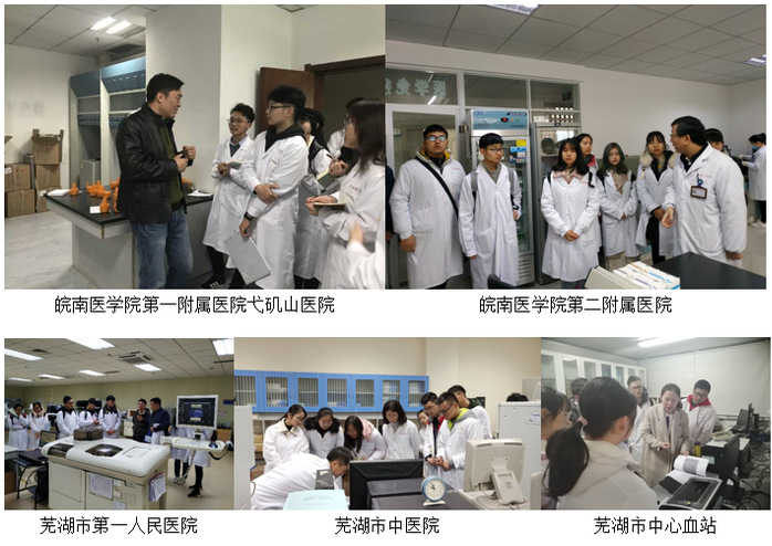 在第一附属医院弋矶山医院、第二附属医院、芜湖市第一人民医院、芜湖市中医院、芜湖市中心血站,在检验科负责老师的介绍下,54名医学检验技术专业学生了解了检验科的工作环境、工作流程,以及检验仪器的使用方法、操作规程及注意事项。芜湖市第一人民医院检验科崔凡主任以“如何成为一个合格的检验人”为题,传授了在校期间如何合理安排专业学习和课外活动,为将来进入工作岗位更好的适应工作和发展需要打下基础,使同学们受益匪浅。