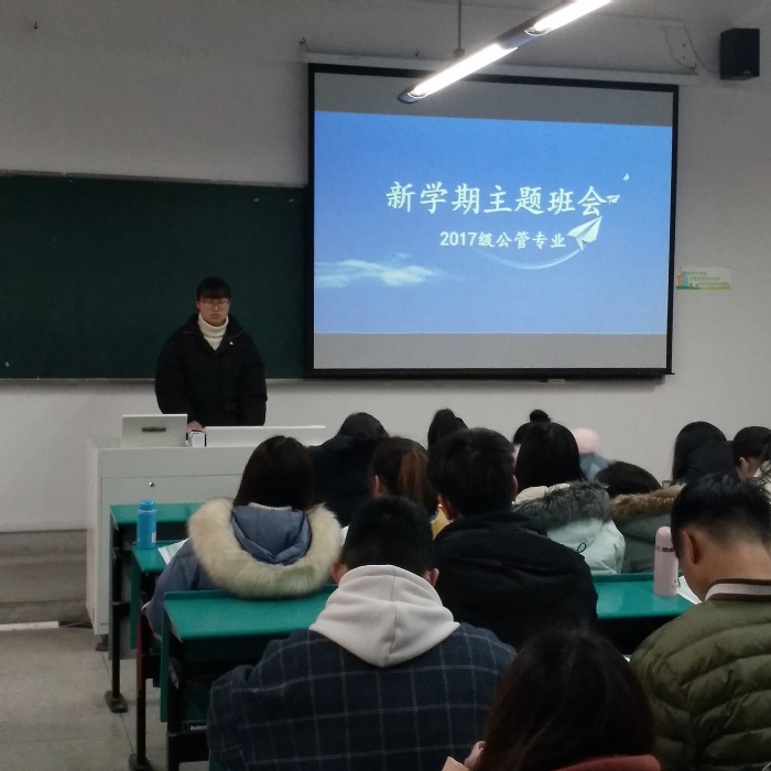 为提高班级学生干部的工作能力和水平,全面总结2018年度各项工作,同时在新学期提前做好规划,为今后的学习和生活打下坚实基础,新学期开学第二周,人文与管理学院2017级同学纷纷以专业为单位,召开以班委述职和安全教育为主要内容的主题班会。主题班会由年级辅导员曹冕侯主持,2017级全体学生参加班会。