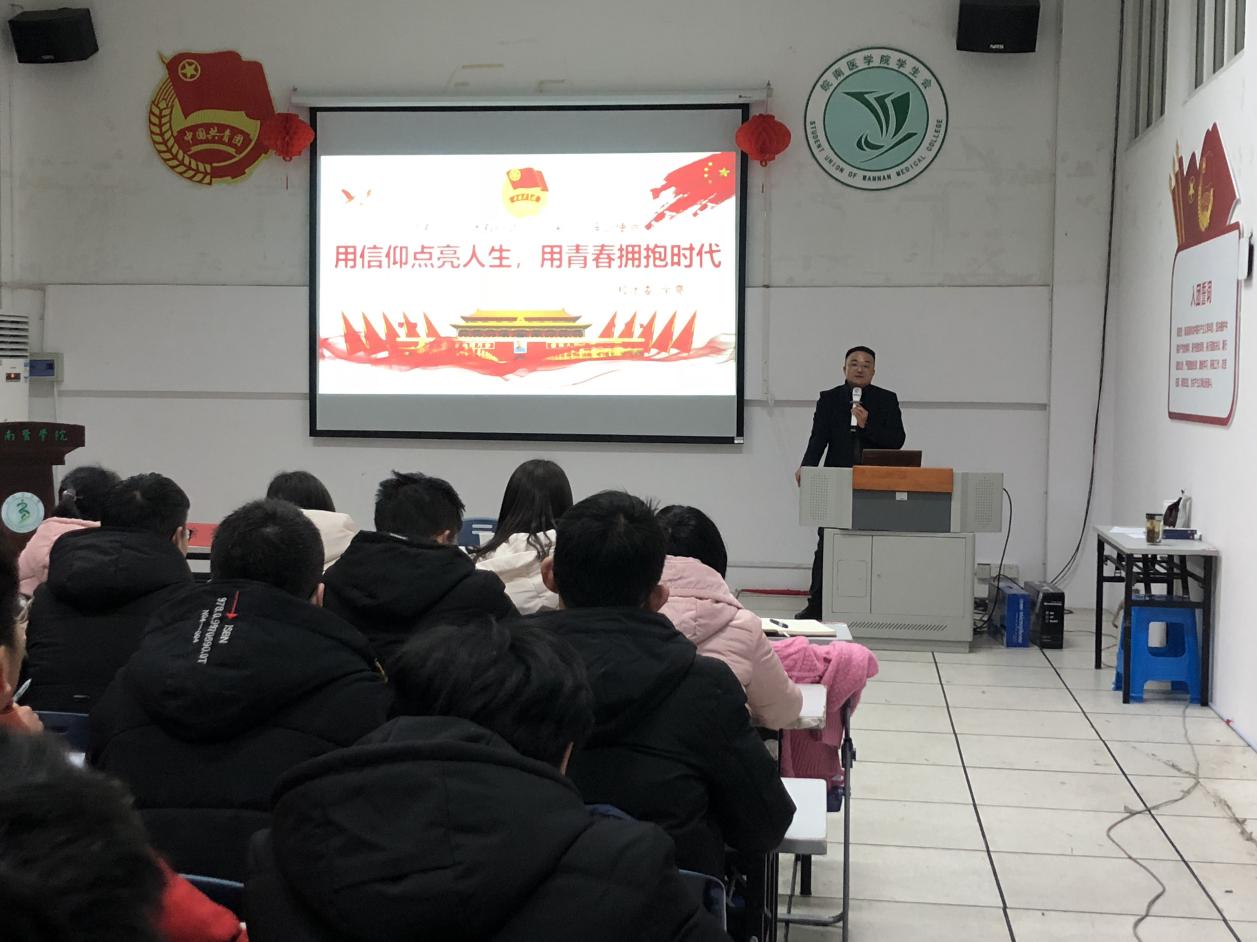 为了积极响应团中央“青马工程”的号召,提高学生骨干和广大团员青年的思想政治素质和政策理论水平。3月8日晚,医学信息学院在校团委活动室举行了校第十一期“青马班”开班仪式暨首次授课。校团委副书记余亮,医学信息学院党总支书记陈晓宏、团委副书记章蕾出席开班仪式。