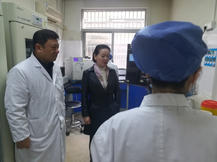 随后,在江明凤陪同下,浦春一行进行现场考察,先后参观了医院检验科本部及分部科室、学科组和办公场所,切实了解医院的工作情况及实习生活环境。