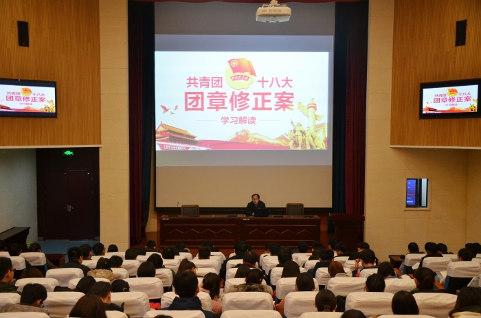 随后方基勇为同学们讲解团的十八大对团章修改的相关内容。他分别从修改原因、修改原则以及团章修改前后的对比进行深入解读,让每一名共青团员了解新团章的内容和团章修改的意义。