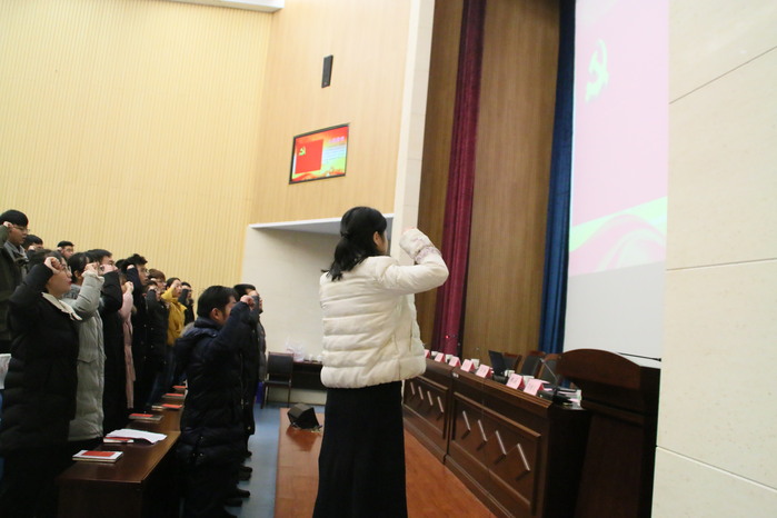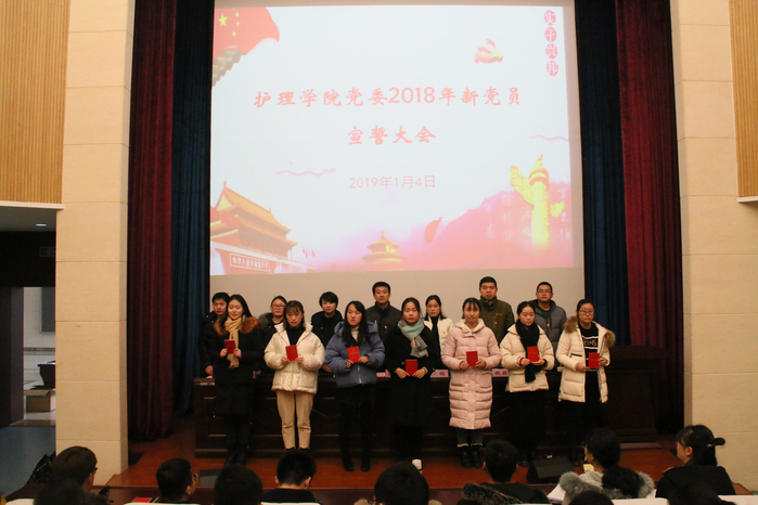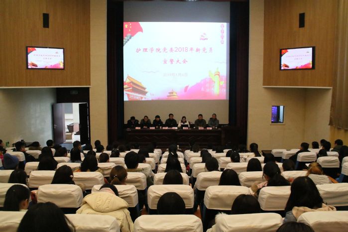 为严肃发展党员工作,增强党员意识,进一步激发广大党员的荣誉感、责任感和使命感,2019年1月4日下午,护理学院在逸夫科技楼报告厅举行2018年新党员入党宣誓仪式。学院党委委员、支部书记、教工党员和新党员以及部分学生入党积极分子参加此次仪式。会议由学院党务秘书张吉玉主持。