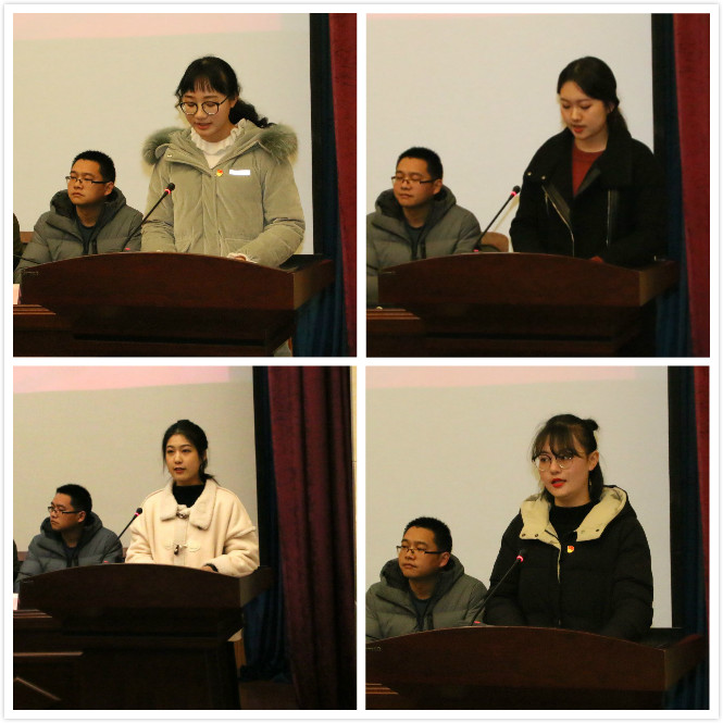 新老学生党员代表发言。老党员代表、2015级本科李子若和2016级本科周婧文表示,作为党员要守得住自己的初心,严格要求自己,永葆共产党员的先进性,无愧于共产党员的光荣称号。新党员代表、2017级本科徐敏和2017级专科李钊颖代表全体新党员郑重向党组织表明决心,表示将不忘初心、牢记使命,不断加强学习和实践,在思想上和行动上高标准、严要求,积极发挥党员先锋模范作用。