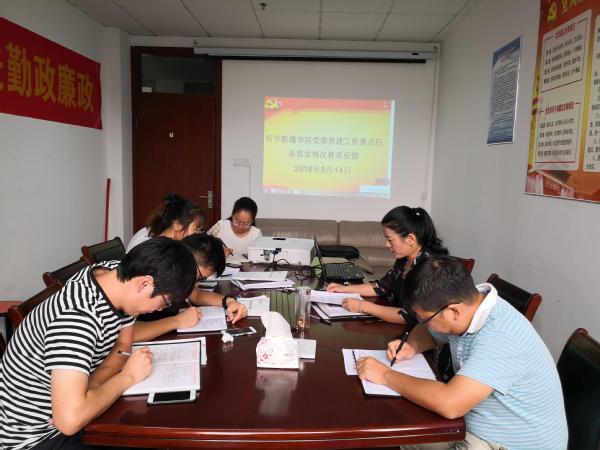 9月14日,医学影像学院党委召开党建工作重点任务落实情况督查反馈整改落实会,学院党委书记、副院长张建英,党委副书记、副院长许国飞和各支部书记参加会议。