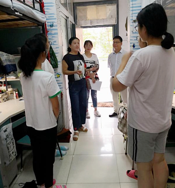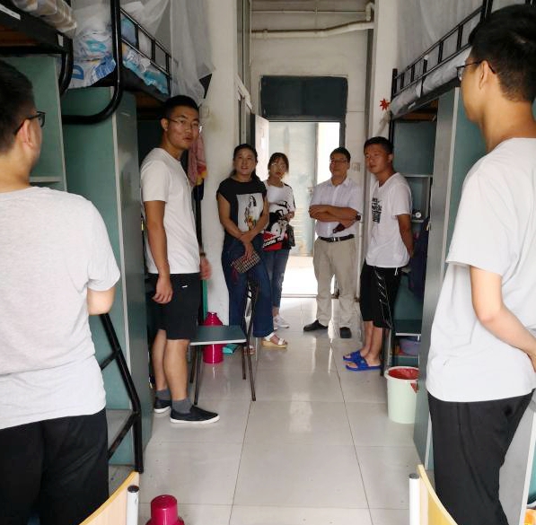 老师们每到一间宿舍,就逐个和新同学交谈,了解同学们的基本情况,询问新生来自什么地方、生活是否习惯、有什么困难等,希望新生尽快转变角色,以适应新的环境,照顾好自己并处理好各种人际关系。同时还向新同学强调防诈骗、财产以及人身安全,有问题及时向辅导员或班主任老师沟通交流。就是否适应新的环境、住宿是否习惯等等,同时还叮嘱同学们遇到困难要及时和辅导员沟通交流。