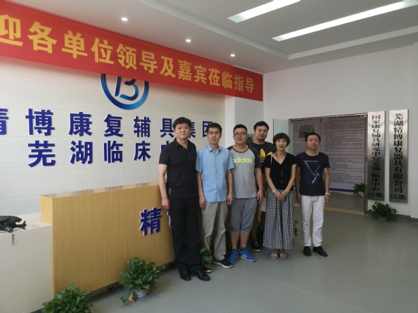 为加强康复治疗学专业教学师资团队和基地建设,寻求优质企业资源合作,进一步拓展专业教学师资团队,提升教育教学质量,继走访南京医科大学和芜湖市第五人医院之后,8月10日,由临床医学院副院长李曙牵头,一附院教育处主任徐艳、康复治疗学教研室主任许业松等一行5人赴精博康复辅具集团芜湖临床中心考察,受到了安徽区总经理查艳林、芜湖分中心负责人李炜等企业领导的热情接待。