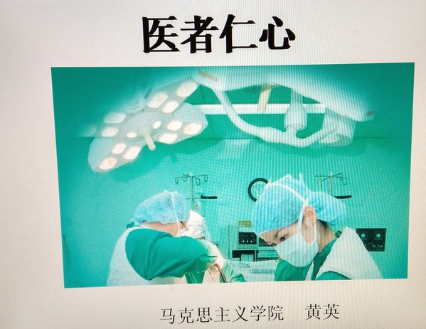 黄英首先以“你为何选择医生职业”为切入点,引发同学们对内心初衷的追问;之后她从不同职业的辛苦认知、医患矛盾告急的集中表现、当前医患矛盾原因分析、医德医风的具体要求、医患沟通技巧、当前为改善医患关系的措施等六个方面阐释“无德者不能为医,有品者方能济世”。为了让同学们更好地理解医生职业是“健康所系,生命之托”,她选取生动鲜活的“最美医生”素材:山西一院97岁医生于载畿仍坚持每周出诊,她坦言“治疗才是活着的意义”;索道医生邓前堆每天靠一根绳索横渡山高水急的怒江大峡谷,他说“病人需要,我就出发”;“中国肝胆之父”吴孟超医生认为“即使有一天倒在手术室里面,也是我一生最大的幸福”。这些将自己一生献给祖国医学事业的医生代表,用崇高的医德和精湛的医术诠释了“医者仁心”。