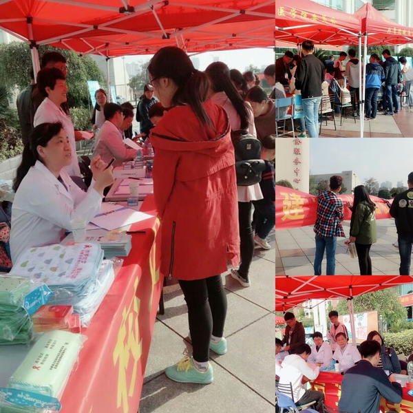 10月28日上午,检验学院携手安徽省疾病预防中心的专家们在1号食堂门口广场,开展艾滋病防治知识的宣传和咨询活动。学院党政领导和有关老师也亲临宣传咨询现场。通过发放有关艾滋病相关知识的调查问卷,调查高校同学们对于艾滋病的认识和理解;同学们仔细认真地填写调查问卷,专家们现场接受咨询;宣传和咨询活动使同学们更深一步地去了解和认识艾滋病防治相关知识;同学们纷纷在“创建‘零艾滋'校园,我参与,我支持”的横幅上郑重地签下自己的名字,承诺防“艾”从个人做起,从小事做起,从点滴做起。