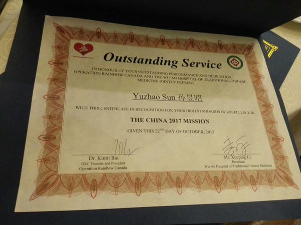 在整个诊疗手术过程中,孙昱昭凭借扎实的口腔医学专业知识和深厚的医学英语基础,让外国医护人员与患者以及患者家属之间顺畅沟通,在患者与外国医生之间搭建沟通桥梁,促进两国医务工作者之间对于唇腭裂序列治疗学术交流。为期7天的志愿服务,每天工作12小时,孙昱昭出色地完成了自己承担的各项工作,展现了一名党员的先锋模范作用和吃苦耐劳的精神,并获得该组织颁发的“卓越贡献志愿者服务”荣誉证书。
