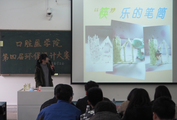 绿色发展,赢在未来。为响应“地球一小时”活动的号召,同时激发和培养大学生的环境保护、低碳生活的意识,推进“双文明”创建,口腔医学院团委于2017年3月25日在1101教室举行口腔医学院“青”国“青”城第四届环保设计大赛。