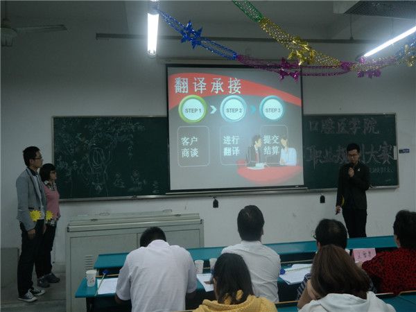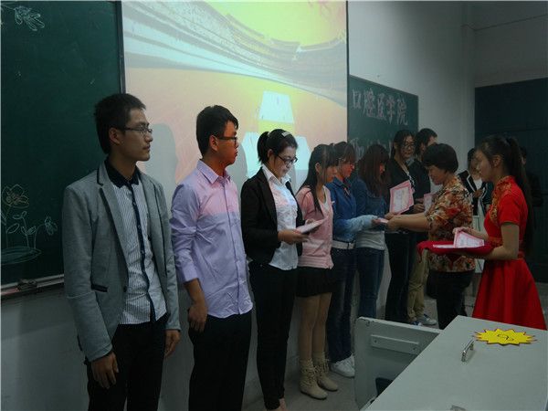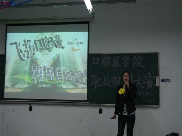 为提高大学生职业规划意识,鼓励大学生的创新创业,为大学生提供锻炼本领施展才华的机会,口腔医学院精心组织,于10月14日晚在在2号教学楼202教室举办大学生职业规划设计大赛暨大学生创业大赛。来自口腔医学院各年级的就业组4名选手和创业组8组选手参加了比赛。法医学院党总支书记洪亮、口腔医学院党总支书记柴琳、学生处副处长王雪琴、团委副书记许国飞、法医学院团委书记王进步和口腔医学院的辅导员老师担任评委,150多名学生观看了整个比赛。