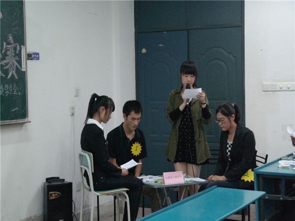 创业组选手回答评委提问 比赛过程中,参赛选手紧扣主题,条理清晰,语言生动,富有针对性和感染力,现场不时爆发出热烈的掌声。经过激烈角逐,2012级的吴素娟同学获得就业组第一名;2010级的郭楚楚、王方兴、吴雅嫒组摘得创业组桂冠。