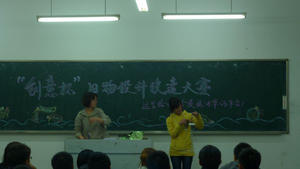 为响应预防医学系提出的“绿色、环保、节能”的理念,启发同学们的创新思维,系团委学生会于11月下旬面向全系同学开展旧物设计改造比赛。 本次比赛本着创新、实用、环保理念,最后从各班级的参赛作品中选出了十五件作品进行决赛。在主持人介绍完评委和比赛标准后,选手们向评委和观众介绍并展示自己精心创作的作品用途以及创作灵感。同学们充分发挥自己的想象力,不受材料的限制,充分利用自己身边的废旧物品,设计出自己的作品,携手环保,变废为宝。