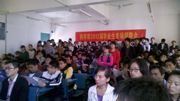 为了拓宽2012届毕业生就业渠道,为毕业生提供更多就业机会。2011年11月16日,药学系在1-401教室举办了江苏恒瑞医药股份有限公司专场招聘会。