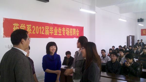 毕业生就业工作是药学系一直重视的一项工作,在系部领导的统一部署和安排下,2011年11月17日,药学系在大学生活动中心二楼就业报告厅,举办了江苏豪森医药销售有限公司专场招聘会。