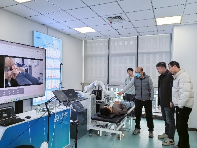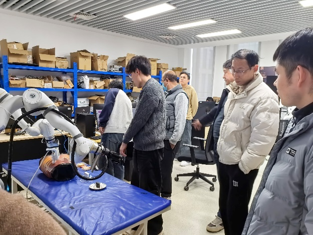 座谈会结束后,叶明全一行在合滨智能负责人的陪同下,实地参观了公司生产研发场地,近距离观摩了远程超声诊断系统、智能超声数据盒子、医疗辅助机械手等核心产品的功能演示,对公司的技术创新能力与产业发展潜力有了更直观、深入的了解。