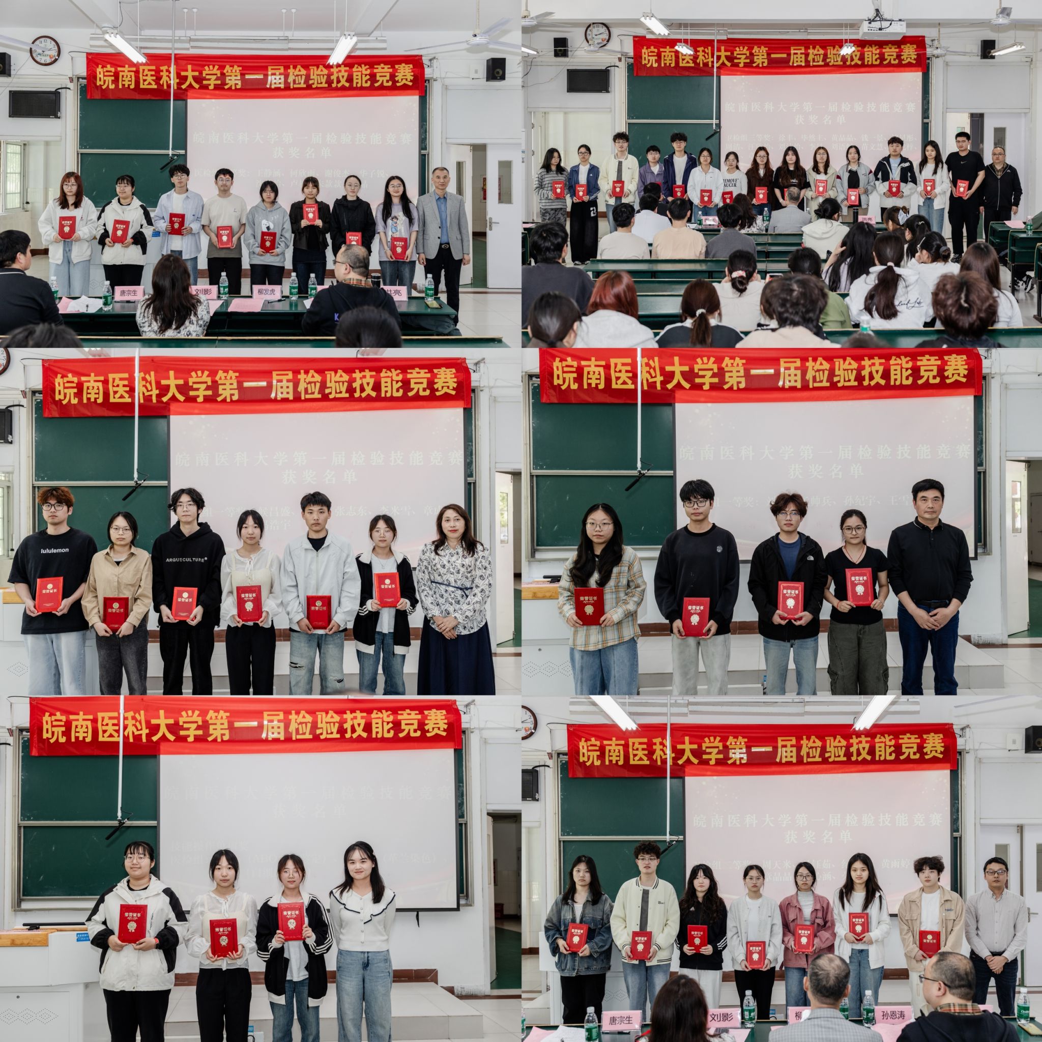 经过激烈角逐,候昌盛等6名同学荣获医检组一等奖,刘俊等4名同学斩获卫检组一等奖;王静涵等8名同学、周天米等7名同学分获医检组、卫检组二等奖;马骏等11名同学、徐丰等14名同学分获医检组、卫检组三等奖;卢楠等3名同学、李娟等4名同学分别摘得医检组、卫检组技能操作单项奖。