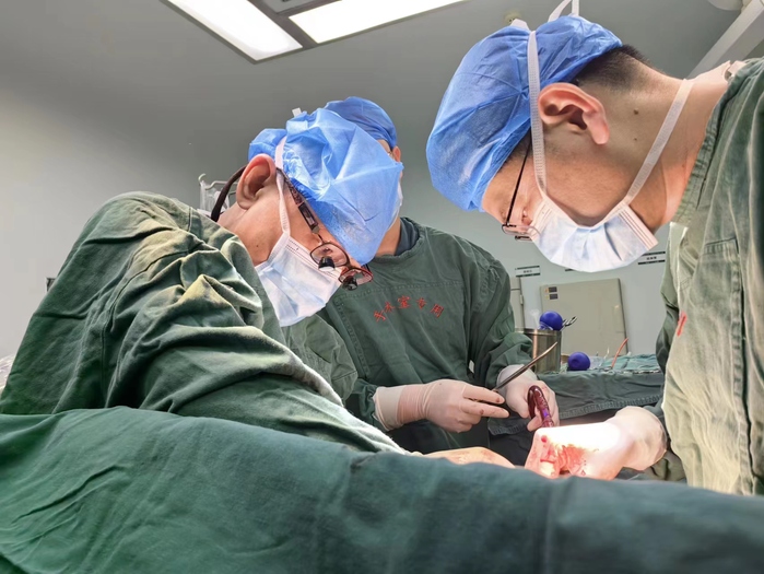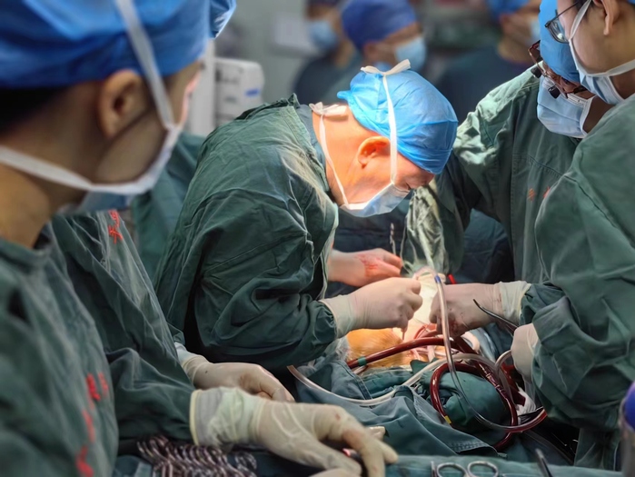 针对患者病情危重程度,经张大发主任团队综合评估,充分考虑延长患者生命、促进病情转归、提高生活质量等因素,决定实施“人工心脏”植入术。该类手术是目前公认难度最高的心脏手术之一,在省内尚无先例。植入人工心脏可实现改善心力衰竭、促进心功能恢复、支持患者长期生存等功能。为确保手术顺利实施,全院上下通力协作,强化支持保障,科学制定手术方案,对术中每一个环节进行推演。3月18日下午,由张大发主刀,心脏大血管外科团队与重症医学科、麻醉科、心血管内科、超声医学科、输血科、手术室等多学科默契配合,历时5个小时,“人工心脏”流出管道与自体升主动脉精准吻合,患者顺利脱离体外循环辅助,各项心脏功能和医学指标平稳,手术取得圆满成功。