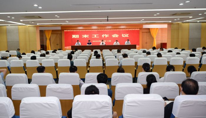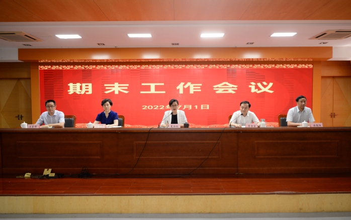 2022年7月1日,我校在图书信息楼学术报告厅召开期末工作会议,总结上半年主要工作,部署暑期重点任务。在校校领导夏劲松、廖圣宝、贾贤燕、徐朝阳、文育锋出席会议。会议由党委书记夏劲松主持。