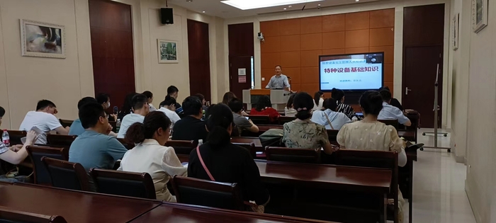 本次培训由科研处主办,邀请芜湖市特种设备监督检验中心宣友志工程师授课。宣友志基于特种设备管理和使用的相关法律法规,围绕特种设备基本概念、常见类型、操作流程以及有关注意事项做了详细讲解,并就常见安全隐患进行了分析。整个培训内容丰富、通俗易懂,知识性强,并且通过案例解析、现场答疑,让参会人员更好地了解和把握特种设备安全操作规范与方法,有助于提高特种设备使用年限和管理人员的实操能力与日常维护管理能力。