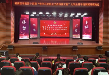喜迎二十大、永远跟党走、奋进新征程。为深入学习贯彻习近平新时代中国特色社会主义思想、党的十九大和十九届历次全会精神,认真落实习近平总书记关于青年工作的重要论述,为党培养信仰坚定、能力突出、素质优良、作风过硬的青年学生骨干,4月30日上午8点半,校第十四期青年马克思主义者培养工程大学生骨干培训班开班仪式在图书馆三楼报告厅举行。校党委副书记吴金月出席开班仪式,校团委专兼职团干、第十四期“青马班”学员在主会场和分会场参加仪式,2022年度团支部书记培训班全体学员通过腾讯课堂同步观看。开班仪式由校团委副书记饶婷婷主持。
