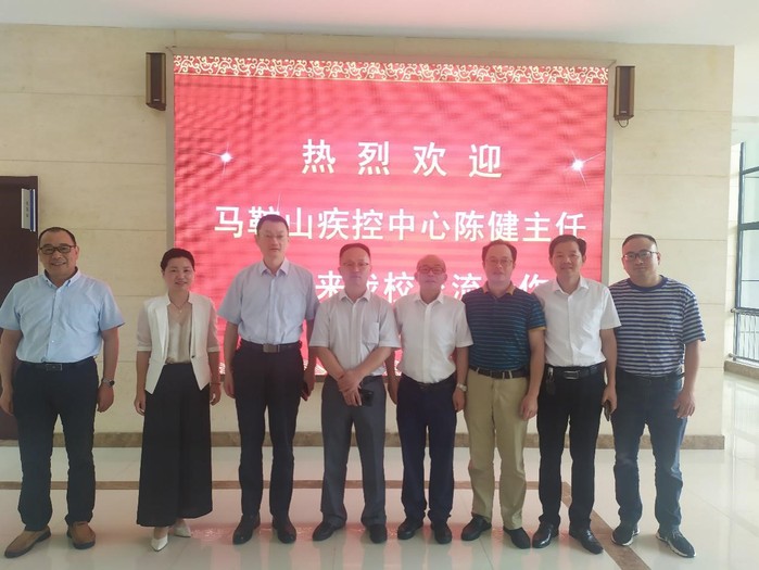 为深入贯彻落实国务院办公厅《关于加快医学教育创新发展的指导意见》(国办发〔2020〕34号)和安徽省政府《关于安徽省深化医教协同进一步推进医学教育改革与发展实施方案》(皖政办〔2017〕81号)等文件精神,构建高水平公共卫生人才培养体系,实施健康中国战略的新任务,积极推动大学高水平公共卫生学院建设,7月7日上午,马鞍山疾病预防控制中心陈健主任一行7人来我校洽谈构建附属疾病预防控制中心事宜。我校发展规划处处长余结根、教务处副处长赵劲松,公共卫生学院院长黄月娥、检验学院院长洪亮等出席了会议,会议由公共卫生学院党委书记方基勇主持。