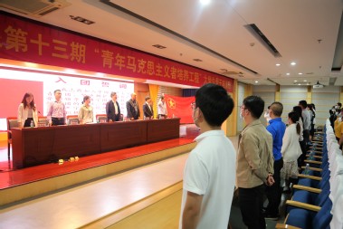 学党史、强信念、跟党走。为深入学习宣传贯彻习近平新时代中国特色社会主义思想和党的十九大精神,认真贯彻落实习近平总书记关于青年工作的重要思想,切实提升团学骨干理论水平和业务能力,5月22日上午8点,校第十三期青年马克思主义者培养工程大学生骨干培训班开班典礼在图书馆三楼报告厅举行。副院长吴金月,组织部、宣传部、学工部负责人出席开班典礼,校团委和学院团委全体专兼职教工团干、第十三期“青马班”学员、校学生会成员等200余人参加典礼。开班典礼由校团委副书记饶婷婷主持。