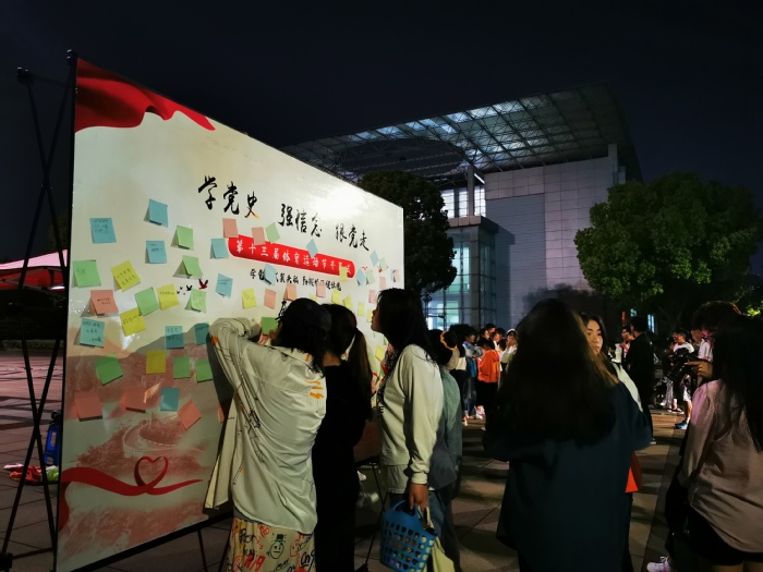 经过精心设计,本次活动将党史教育与体育锻炼相结合,在夜跑路线中分别设立1921、1949、1978、2021四个打卡点。参赛选手需依次通过打卡点,正确回答党史知识问题,取得打卡贴纸。在集齐四个不同的贴纸之后,同学们跑达活动终点,领取到定制徽章并在感悟墙上留言签名。活动过程中,同学们配戴荧光饰品,一路奋勇向前,学习党史知识,认真回答问题。点缀的荧光、青春的步伐、嘹亮的口号,吸引了众多同学驻足围观,大家纷纷表示这是一场有意义、有趣味、有氛围的精彩活动。