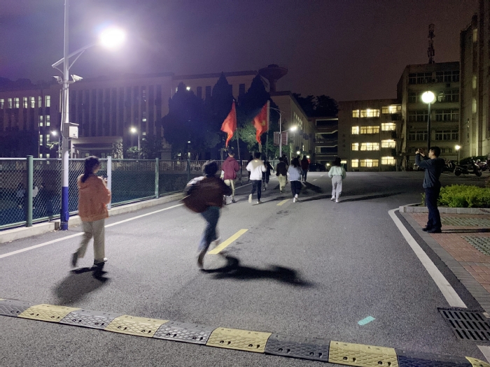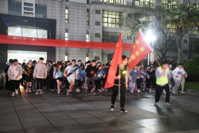 夜跑学党史,荧光青春季。本次开幕式在“荧光夜跑”中拉开序幕,300多名学生分别在滨江、赭麓校区集合点集结。19点21分,随着指令的发出,同学们一起出发,涌动的人群在校园里形成了一道道亮丽的风景线。