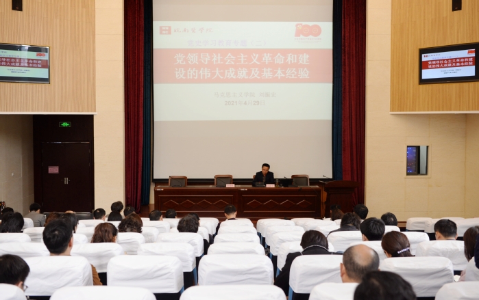 读书班上,校纪委副书记、纪委办主任李军华同志领学《习近平新时代中国特色社会主义思想学习问答》部分篇章。马克思主义学院博士、副教授刘振宏结合史实资料,阐明了开展党史学习教育的重要意义,解读了中国共产党领导社会主义革命和建设的伟大成就及基本经验。