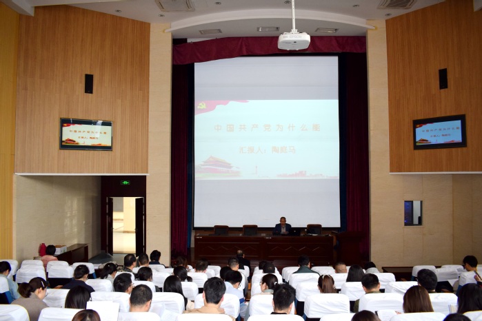 马克思主义学院副院长、硕士生导师陶庭马作了题为“中国共产党为什么能”的党史学习教育讲座。陶庭马表示,中国共产党能够不断发展壮大、取得新民主主义革命的胜利、带领中华民族走向复兴的原因,一是坚持科学的理论指导,始终高举马克思主义旗帜,不断开辟理论发展新境界;二是抱有坚定的理想信念,建立不忘初心、牢记使命的制度;三是拥有强大的组织优势,始终坚持不断强化党员意识、组织意识,保持了党组织的纪律性和约束力;四是拥有坚实的群众基础,始终坚持以人民为中心,坚持人民利益至上;五是坚持彻底的自我革命,锻造了风清气正的政治生态。