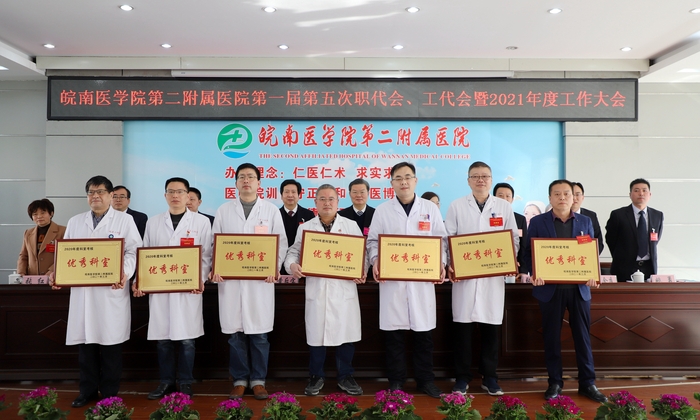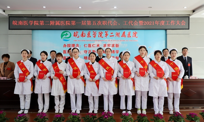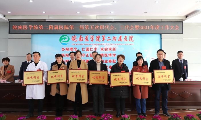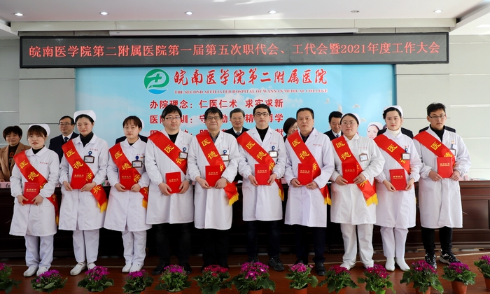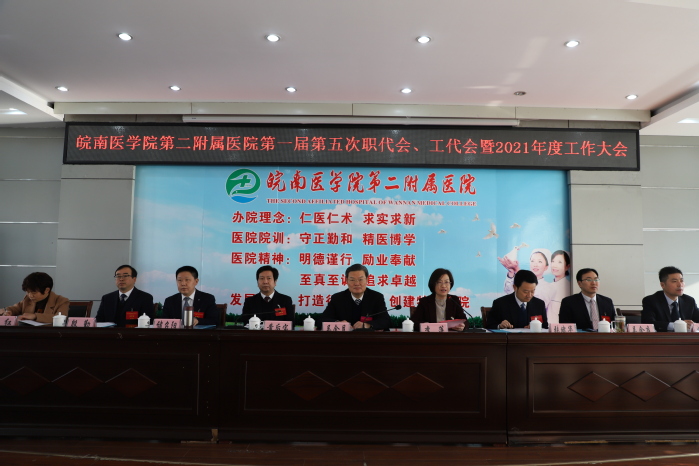二附院党委副书记、院长黄后宝向大会作题为《立足新阶段 贯彻新理念 构建新格局 奋力推动医院“十四五”高质量起步》的医院工作报告。报告全面总结回顾了医院2020年度及“十三五”时期的各项成绩,并对“十四五”时期主要目标任务和2021年重点工作进行了部署。报告指出,2021年是中国共产党成立100周年,也是“十四五”规划开局之年。我们要紧抓机遇,全力以赴做好各项工作。深入推进全面从严治党,加速提升医疗技术质量内涵,强化提升医疗质量与综合防治能力,持续深化医改重点任务攻坚,全面实施外科振兴计划和内科提升计划,着力打造专科领航计划,持续激发人才队伍内生动力,乘势而上,奋力攻坚,为“十四五”规划开好局、起好步,以更加优异的成绩庆祝建党100周年。副院长张斌华向大会作题为《把握重点 抢抓机遇 着力提升医疗服务能力》的医务工作报告。报告指出,2020年,在抗击新冠肺炎疫情特殊时期,医院统筹推进疫情防控和医务工作取得成效。报告提出,2021年医务工作将从提升各学科诊疗能力、持续深化医改重点工作任务、加强医务管理工作、病案管理及电子病历信息化建设、常态化落实疫情防控要求、提升优质护理服务质量、积极完成政府指令性任务等方面提升医疗服务质量内涵,提高医疗服务能力,实现医院社会效益和经济效益双提升。党委委员、副院长储召阳宣读了2020年度优秀科室、优秀中层干部名单,党委委员、副院长殷勤宣读了2020年度医德标兵、十佳医生、十佳护士名单,总会计师姚勇宣读了2020年度部分市级及以上集体、个人荣誉名单。